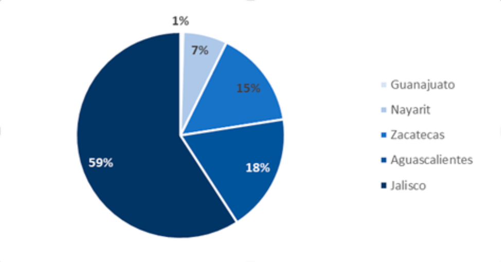 También es notoria la falta de cobertura en las comunidades rurales de los municipios de San Felipe (80.73%) en Guanajuato; Chimaltitán (82.77%), Huejuquilla el Alto (84.03%), San Miguel el Alto (83.98%), Villa Guerrero (73.86%) y Zapopan (83.83%) en Jalisco; La Yesca (73.75%) en Nayarit; Genaro Codina (76.53%), Pinos (84.40%) y Valparaíso (80.62%) en Zacatecas (Figura 30).